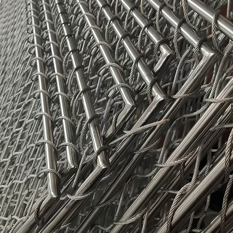 Ferruled netwerk:Biedt dezelfde fysieke eigenschappen als geknoopt gaas, met roestvrijstalen kabels gecombineerd met adereindhulzen van hetzelfde roestvrij staal.