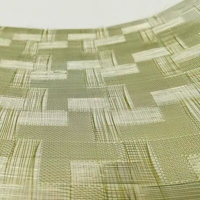 توری سیم برنجی لایه میانی برای شیشه لمینت استفاده میشود که از دو یا چند ورق شیشه لمینت شده بین یک یا چند لایه فیلم میانی توری فلزی تشکیل شده است. پس از پیشفشاری (یا وکیوم) با دمای بالا و فرآوری فشار با دمای بالا، شیشه و فیلم میانی به عنوان یک محصول شیشه کامپوزیت به هم متصل میشوند.