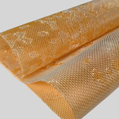 پارچه های منسوجات فلزی برنز لمینت شده شیشه ای، مجموعه ای از پارچه ها را برای مصارف معماری و قابلیت های چشمگیر کاربرد طراحی داخلی ارائه می دهند. ویژگی خاص این پارچه ها توسط نخ های پود که همگی 100٪ فلزی هستند، افزایش می یابد.